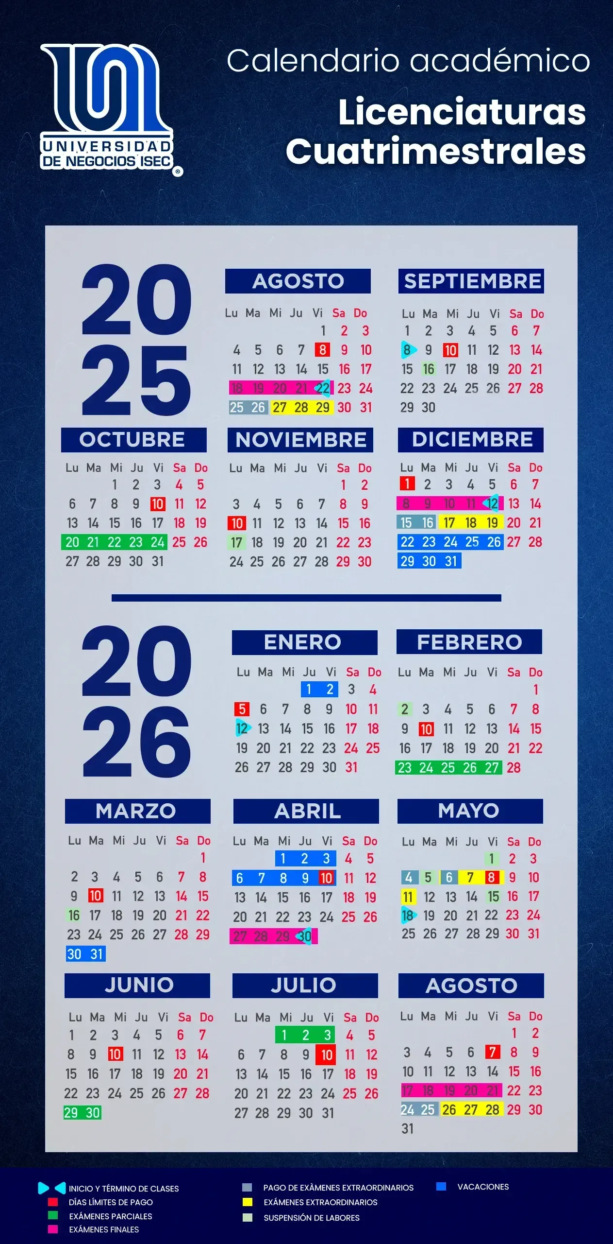 Calendario Académico Licenciaturas Cuatrimestrales