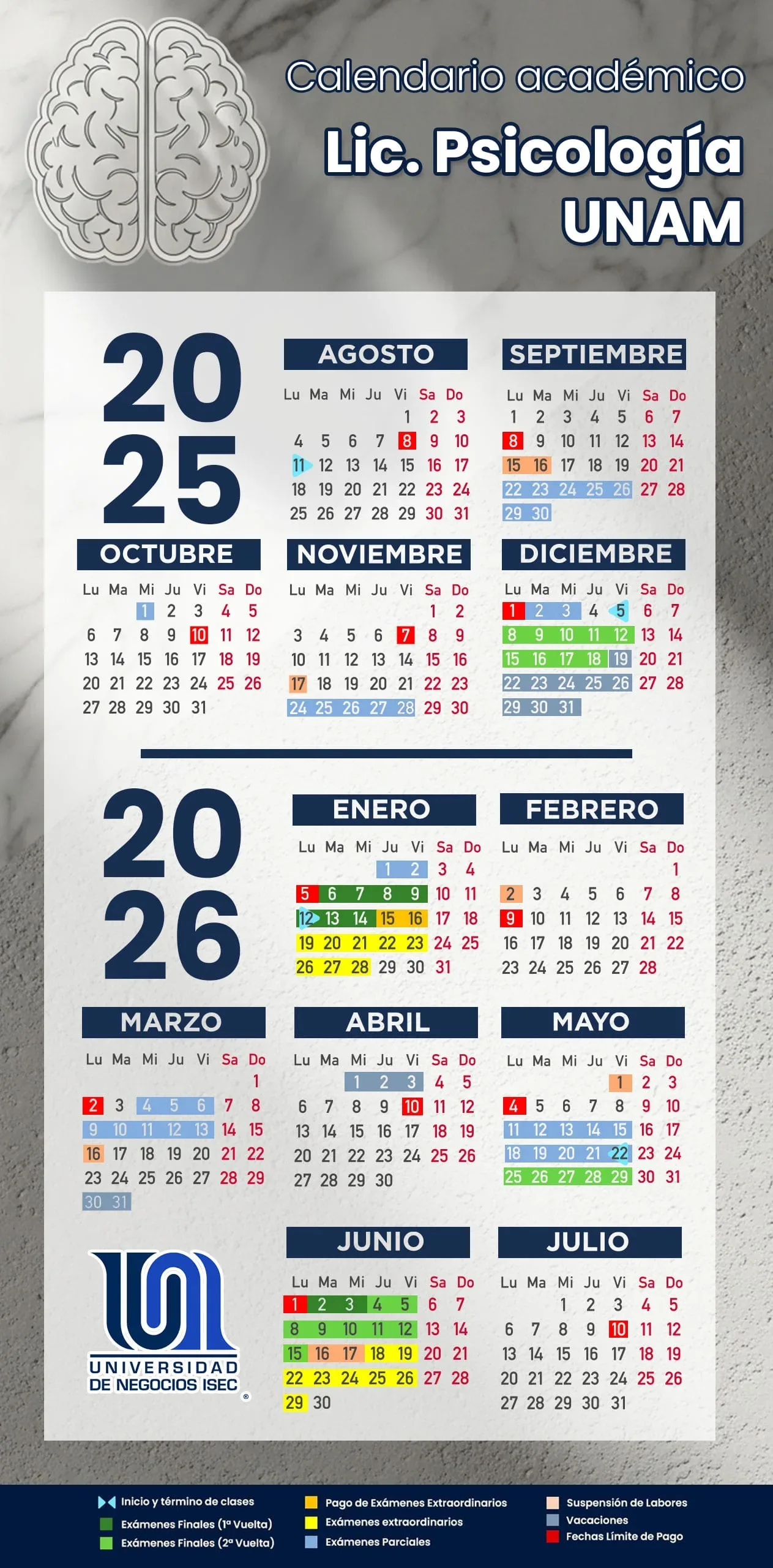 Calendario Académico Licenciaturas UNAM Psicología